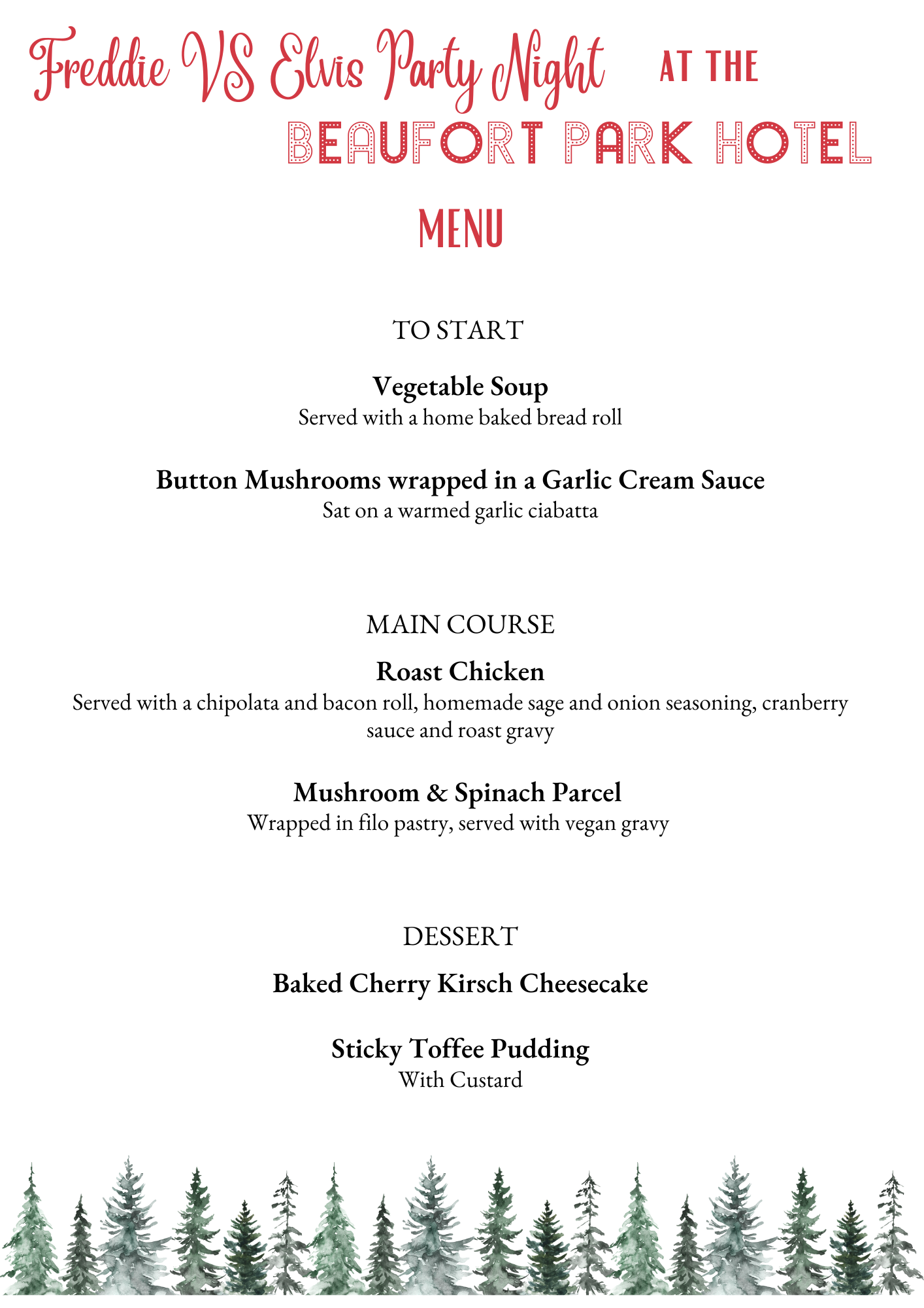 Includes three course set meal*, tribute act and disco to finish off your evening!